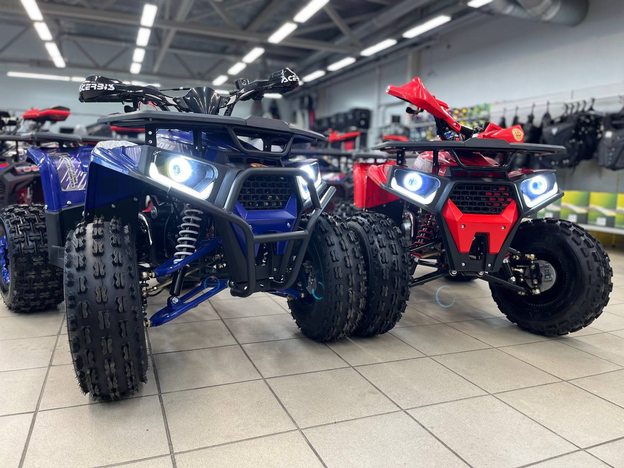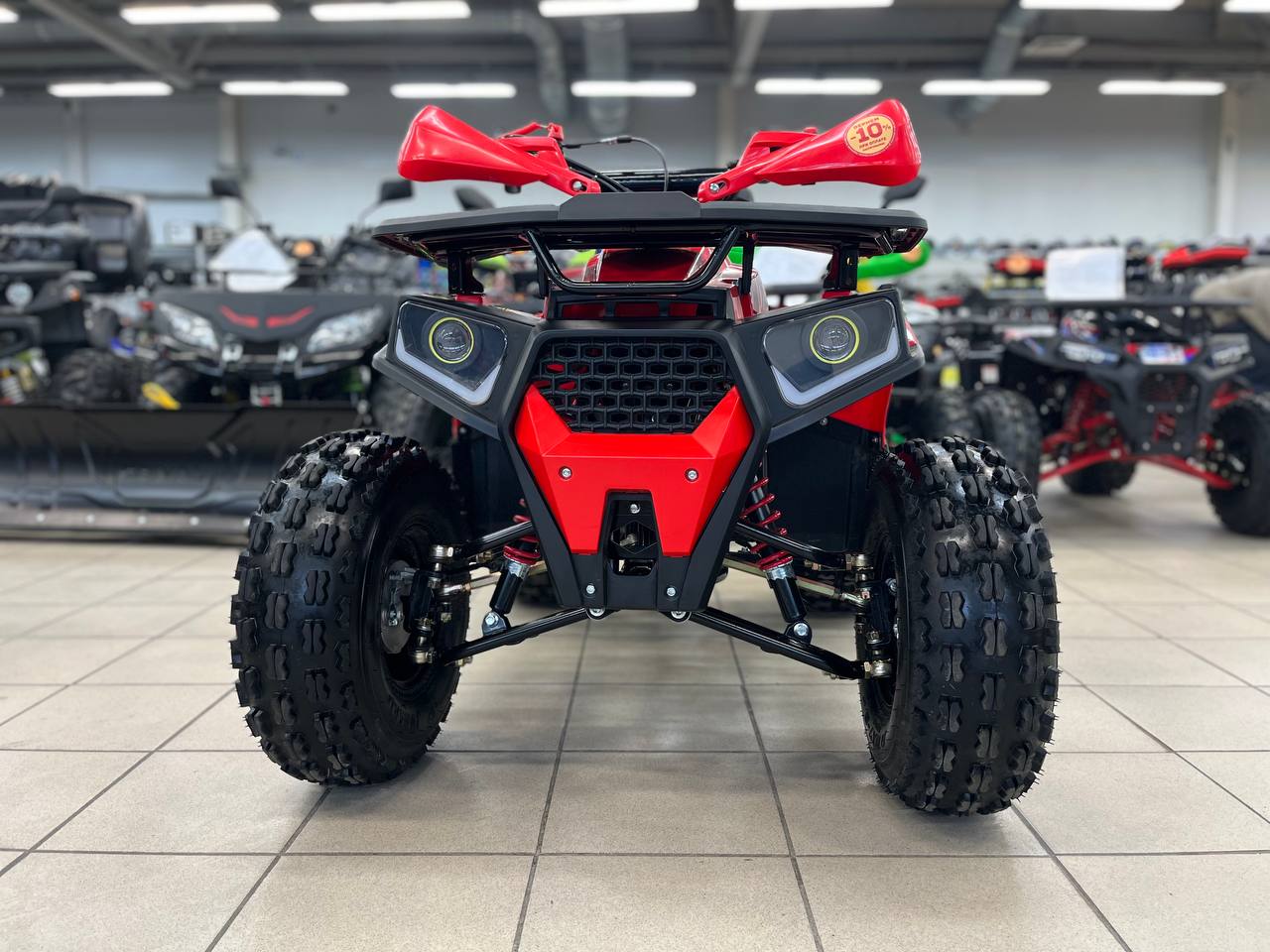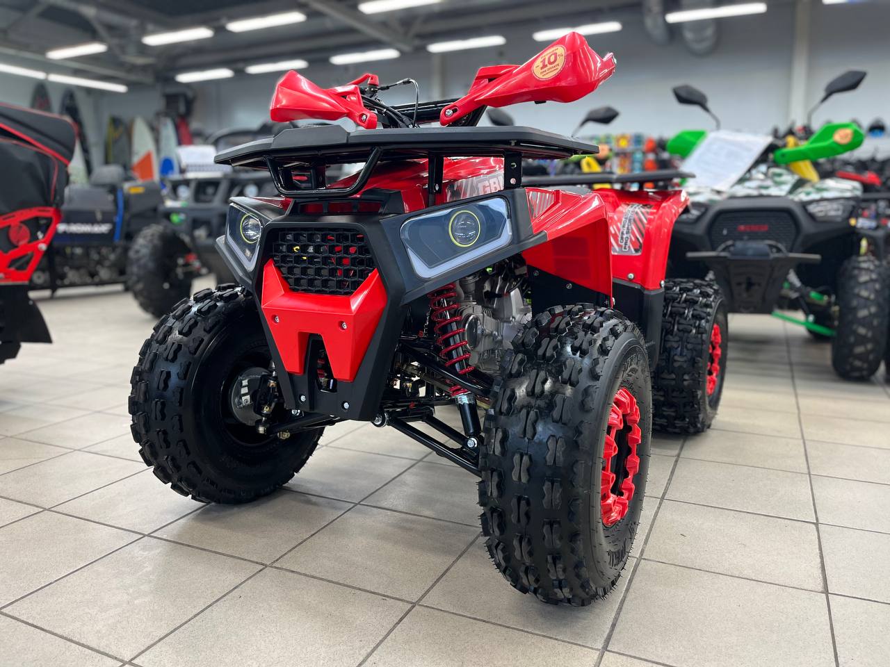 Квадроциклы обладают отличной энергоемкой подвеской. Мощные регулируемые по жесткости амортизаторы на передних колесах и моно-амортизатор на заднем маятнике.