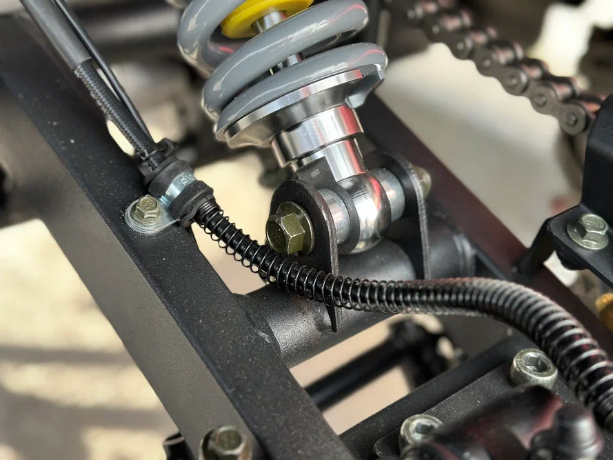 Квадроциклы обладают отличной подвеской. Мощные регулируемые амортизаторы на передних колесах и моно-амортизатор на заднем маятнике.